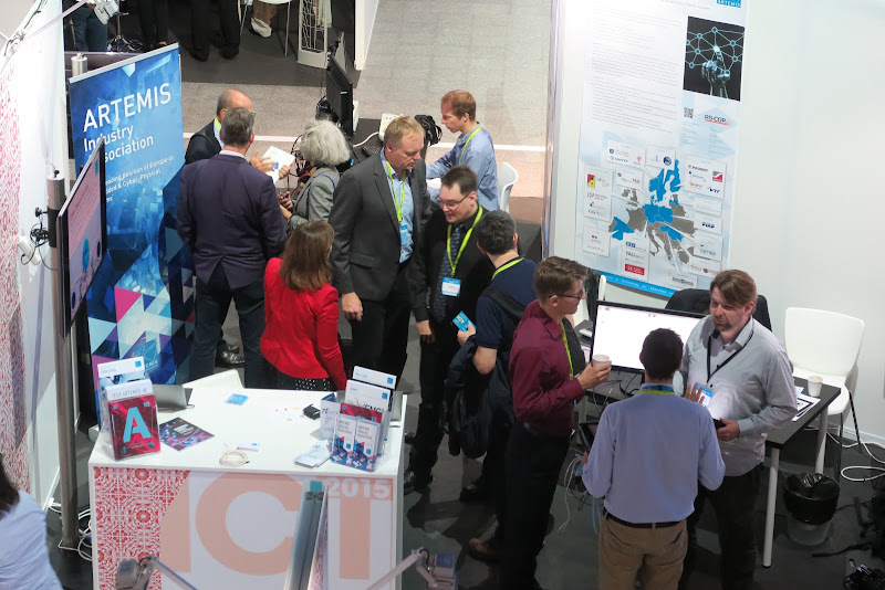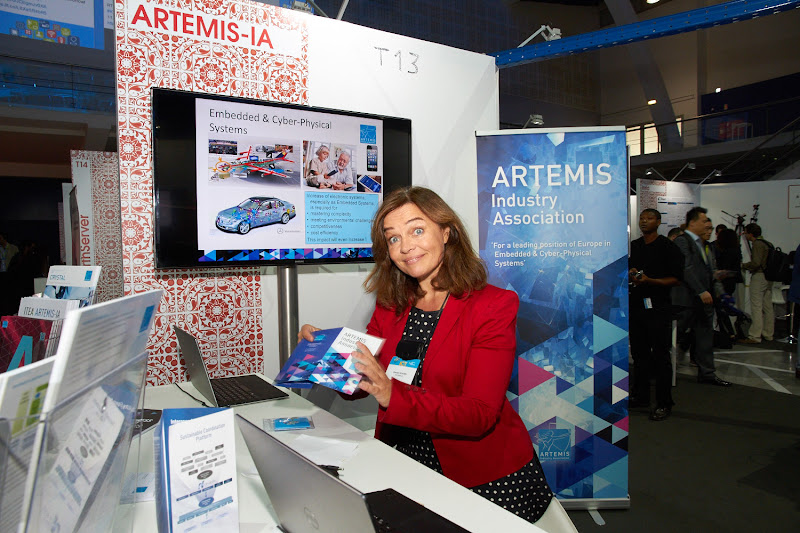 ARTEMIS-IA organised a booth at the exhibition and co-organised several networking sessions. Our target was to show the relevance of the large ARTEMIS Innovation Pilot Projects, now all running for some years and able to show first results. We have been granted a double-size booth on one of the most walked-through lanes in the exhibition. At the ARTEMIS-IA booth the projects Crystal, EMC2 and R5Cop were presented, while Arrowhead had a separate booth next to ours. Although R5Cop is not an AIPP their automated robots moving around the exhibition attracted a lot of attention from several film-crews. Both Crystal and EMC2 had nice and convincing demo’s that made many to spend some time at our booth.