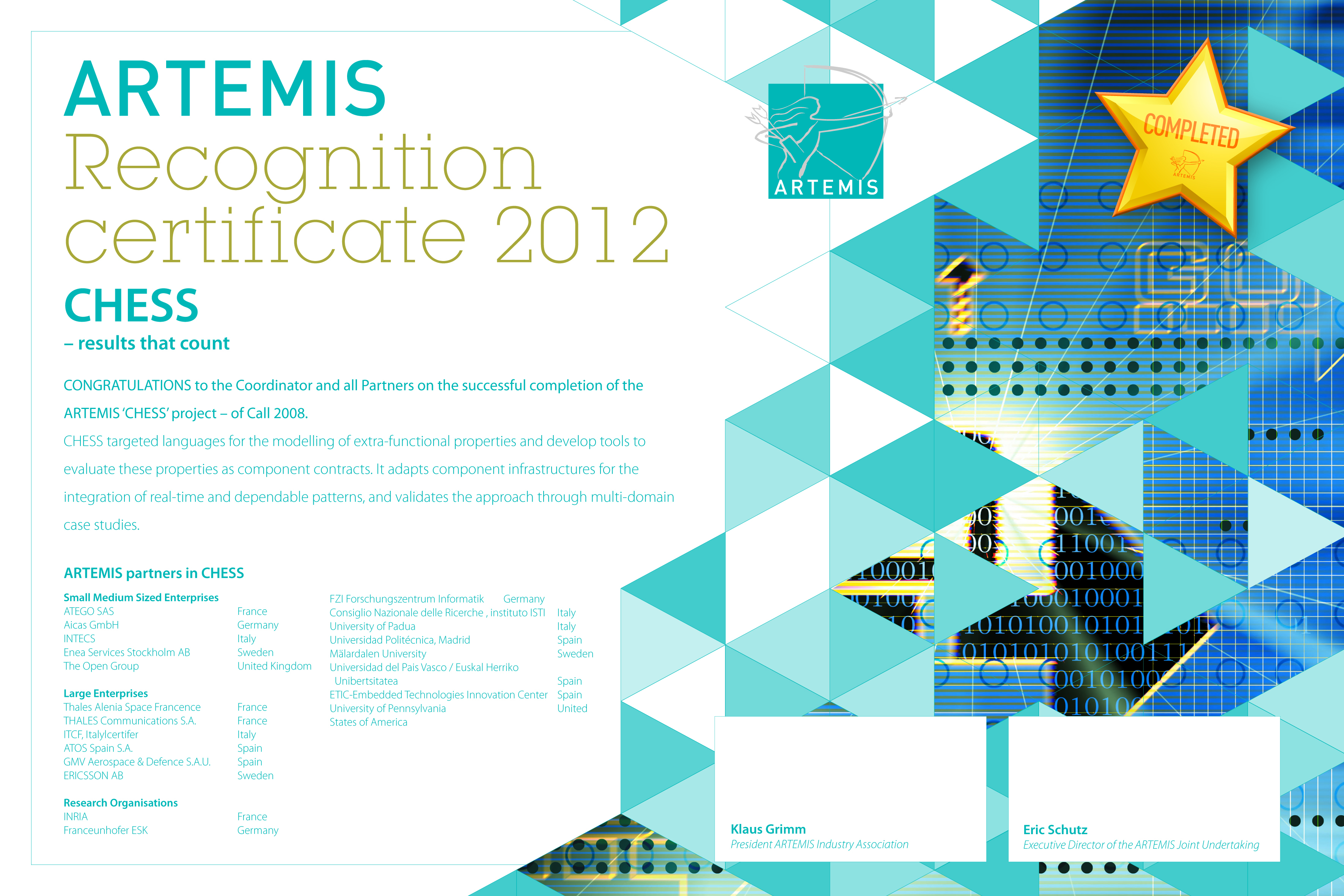 CHESS aims to build modelling languages for extra-functional properties, and develop tools for evaluation of these properties of component contracts. It will adapt component infrastructures for the integration of real-time and dependable patterns, and validate the approach through multi-domain case studies.