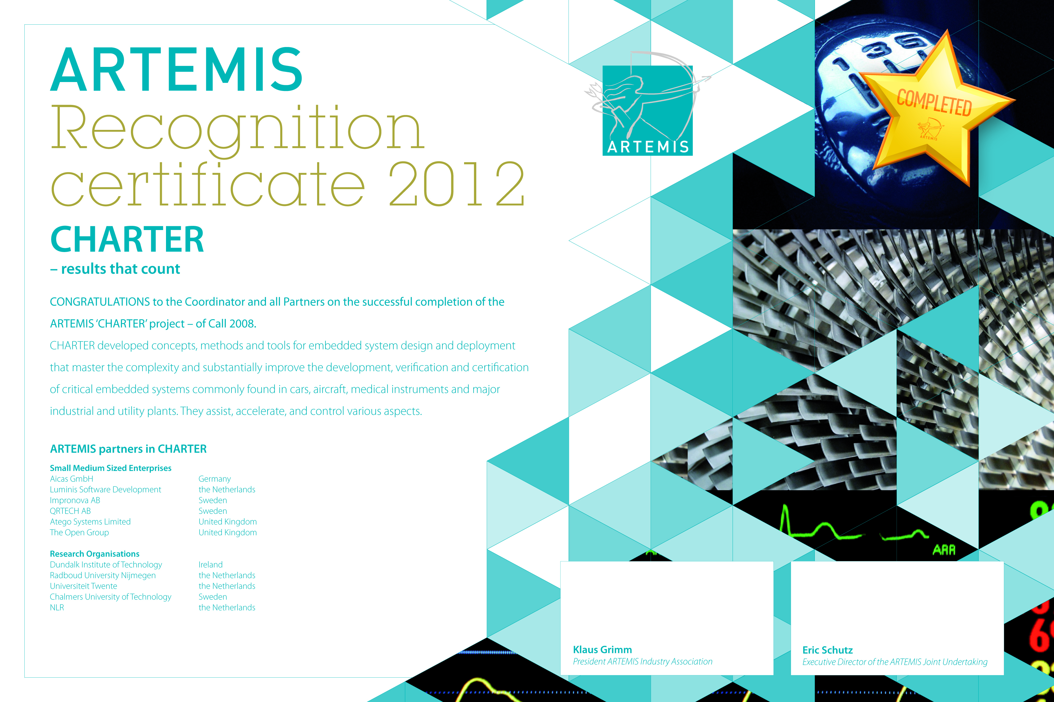 CHARTER will develop concepts, methods, and tools for embedded system design and deployment that master complexity and substantially improve the development, verification and certification of critical systems.